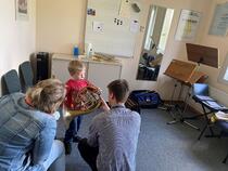 Es darf gelauscht, gesungen und sich durch das komplette Angebot der Musikschule geschnuppert werden. Außerdem können die Kinder selbst Instrumente basteln.